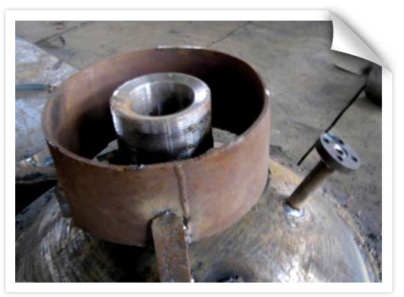 我公司生產(chǎn)的設(shè)備有很多封頭的頂部都焊有加工好帶螺紋的接管,因螺紋凸出在外,在生產(chǎn)中,稍不注意,就會(huì)把螺紋碰壞,把接管碰彎,造成報(bào)廢,而導(dǎo)致返工。如何保護(hù)接管和螺紋,已成為生產(chǎn)中的一道工序,不銹鋼分廠要求職工在生產(chǎn)中嚴(yán)格按照生產(chǎn)紀(jì)律的有關(guān)規(guī)定進(jìn)行生產(chǎn),在焊有螺紋接管或焊有接管的部位,外加點(diǎn)焊一個(gè)凸圈,高于接管,加以保護(hù),這樣以來(lái),既保障了生產(chǎn)進(jìn)度,也確保了產(chǎn)品質(zhì)量,取得了一舉兩得的好效果。