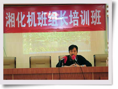 10月11日這一天,湖南湘東化工機(jī)械有限公司三樓培訓(xùn)室掌聲不斷、笑聲不斷,70余人的培訓(xùn)室坐的滿滿的,連過道里都坐滿了人,這里不是看電影,也不是聽報(bào)告,而是湘化機(jī)各分廠、分公司的基層班組長在這里聽培訓(xùn)課。