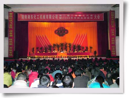 1月6日上午,湖南湘東化工機(jī)械有限公司第二屆二次職代會(huì)暨2008年度總結(jié)表彰大會(huì)在大禮堂召開(kāi),會(huì)議由黨委副書(shū)記、工會(huì)主席姜衡陽(yáng)主持,董事長(zhǎng)兼總經(jīng)理蘇成在會(huì)上作了題為《務(wù)實(shí)創(chuàng)新、精細(xì)管理、形成競(jìng)爭(zhēng)優(yōu)勢(shì),提升企業(yè)檔次》的工作報(bào)告,副總經(jīng)理林德晃宣讀了表彰勞動(dòng)模范和先進(jìn)的決定,公司近千名員工到會(huì)并認(rèn)真聽(tīng)取了報(bào)告。