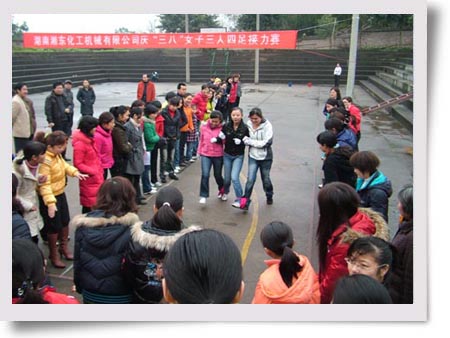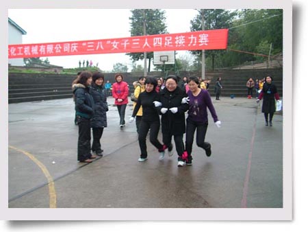 3月7日上午,為慶!叭恕眹(guó)際勞動(dòng)?jì)D女節(jié)99周年,公司女工委員會(huì)在燈光球場(chǎng)舉行了女子三人四足接力賽。公司9個(gè)分會(huì)都派出了參賽隊(duì)伍,按照預(yù)先確定好的規(guī)則,每個(gè)隊(duì)派出6名隊(duì)員,來(lái)回接力六次,以完成賽程時(shí)間長(zhǎng)短來(lái)確定名次。經(jīng)過(guò)激烈的角逐,最后金工分會(huì)獲第一名,機(jī)關(guān)分會(huì)、容器分會(huì)獲第二名,汽輪機(jī)分會(huì)、后勤分會(huì)獲第三名。(尹雄劍)