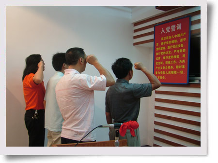 7月1日下午,湖南湘東化工機械有限公司舉行新黨員入黨宣誓儀式,新黨員在黨旗下莊嚴宣誓,“我志愿加入中國共產(chǎn)黨。。。。。!。目前,湘東化機共有黨員598人,其中,具備大專以上文化黨員136人,生產(chǎn)一線黨員110人。 湘東化機始終把基層黨組織建設(shè)作為組織工作重點,圍繞“深入學(xué)習(xí)實踐科學(xué)發(fā)展觀,為黨旗增輝,促進公司又好又快發(fā)展”這一主題,以慶祝黨的生日為契機,組織開展 “爭先創(chuàng)優(yōu)”等形式多樣的活動,鼓勵廣大黨員積極投身于公司的各項工作,進一步形成學(xué)榜樣、趕先進的濃厚氛圍。 在新黨員入黨宣誓大會上,廣大黨員表示:要牢記黨的宗旨,保持共產(chǎn)黨員先進性,繼承和發(fā)揚黨的優(yōu)良傳統(tǒng)和作風(fēng),不斷提高自身的思想覺悟,團結(jié)一心,努力工作,更好地發(fā)揮黨員的先鋒模范作用,為創(chuàng)造公司美好的明天而奮斗。湘東化機黨委書記林德晃殷切希望廣大黨員要時時刻刻嚴格要求自己,刻苦學(xué)習(xí),愛崗敬業(yè),積極進取,甘于奉獻,以滿腔的熱血,付諸于積極行動,為企業(yè)的建設(shè)發(fā)展努力奮斗,以自己無悔的青春向黨組織交上一份滿意的答卷。(王慧卉)