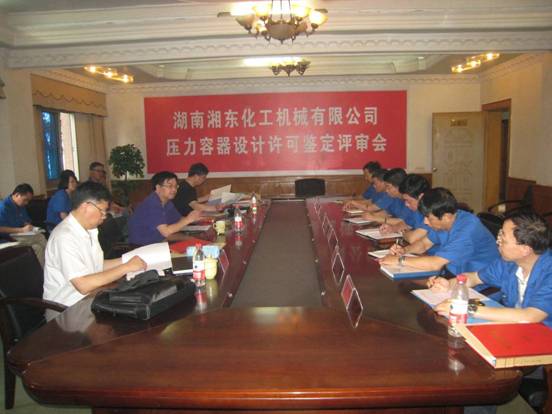 2014年6月11日-13日,中國特種設(shè)備檢測研究院一行5人對我公司A1/A2/A3級壓力容器設(shè)計資格進行現(xiàn)場鑒定評審,評審組由組長錢英豪、組員梁琳、韓建新、葉勇組成,湖南省質(zhì)量技術(shù)監(jiān)督局特種設(shè)備局陳莎莉?qū)φ麄評審過程進行監(jiān)督。