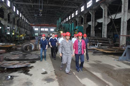 (上圖為各級領導到容器廠房視察150mm卷板機受災情況)
